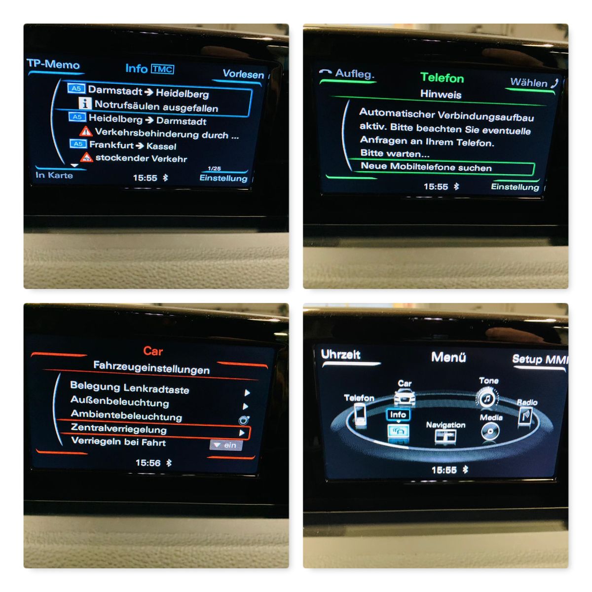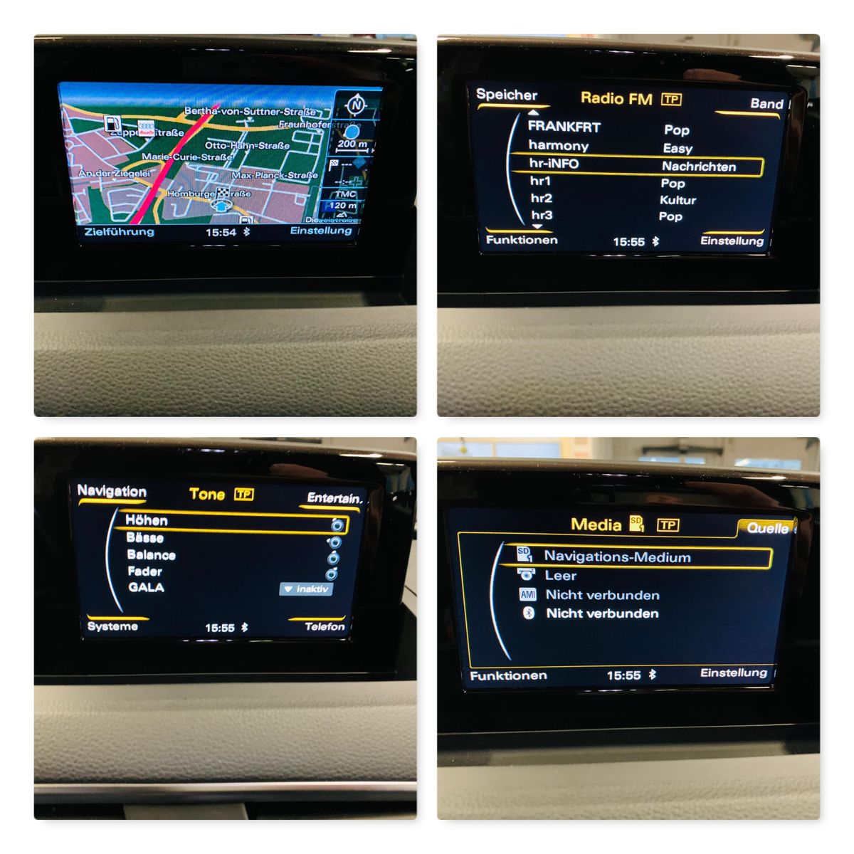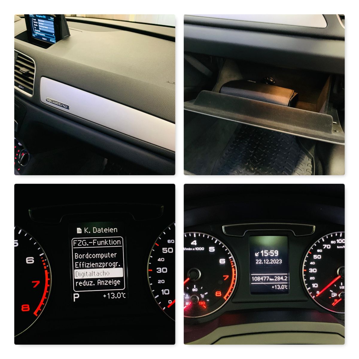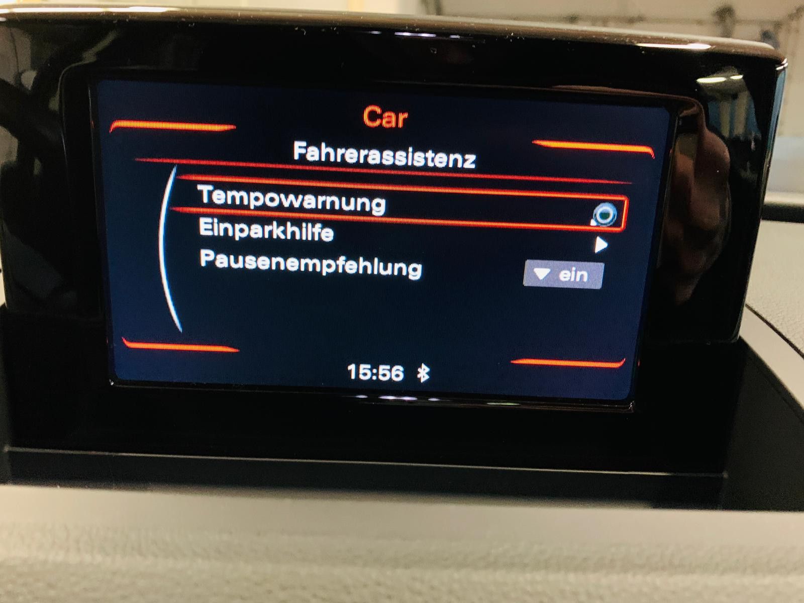 6,5-Zoll-Farbdisplay Allradantrieb ''quattro'' Akustikfrontscheibe mit grauem Colorstreifen Außenspiegel elektrisch einstell-/anklapp-/beheizbar AUX-IN-Anschluss beheizbare Scheibenwaschdüsen Bi-LED-Scheinwerfer (Abblend-, Fern-, Tagfahr-, Autobahn-, Blink- sowie Allwetterlicht in LED-Technologie) Bluetooth-Audiostreaming Bluetooth-Freisprecheinrichtung Bordsteinautomatik für Beifahrer Außenspiegel CD-Player Dachreling Aluminium eloxiert Einparkhilfe vorne & hinten elektr. Lendenwirbelstütze für Vordersitze Fahrer-Informations-System (FIS = Bordcomputer) Fernlichtassistent Gepäckraumklappe elektrisch Geschwindigkeitsregelanlage (Tempomat) ab 30km/h Getriebe: S tronic (7-Stufen) Glanzpaket (Dachrahmen & Fensterschachtleisten in eloxiertem Aluminium, B- & C-Säulen-Verkleidung außen hochglänzend Schwarz) Innenspiegel automatisch abblendbar 2-Zonen-Komfortklimaautomatik Komfortschlüssel (Keyless Öffnen, Starten & Fahren) LED-Heckleuchten (Brems-, Schluss-, Blink- und Heckkennzeichenleuchten) LED-Innenlichtpaket Licht- und Regensensor Mittelarmlehne vorn verschiebbar mit Staufach MMI Radio Multifunktions-Lederlenkrad im 4-Speichen-Design Navigationsystem Panorama Glasschiebe-/hebedach, 2-teilig, elektrisch mit Sonnenrollo Rückfahrkamera Scheinwerfer-Reinigungsanlage SDHC-Speicherkartenleser (bis 32 GB) Sitzheizung vorne statisches Abbiegelicht Nichtraucherfahrzeug tiergeruchfreies Fahrzeug